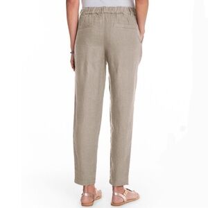 Garnet Hill 100% Khaki Linen Pleat-Detail Trousers Size 18