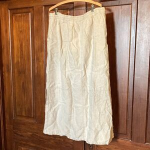 Garnet Hill 100% Linen Beige Side Slits Elastic Waist Maxi Skirt Size 18 Pockets