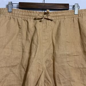 Garnet Hill 100% Linen Mustard Yellow Coastal Pull On 4" Inseam Shorts Womens 18