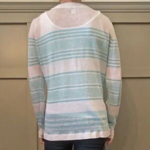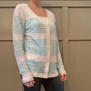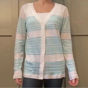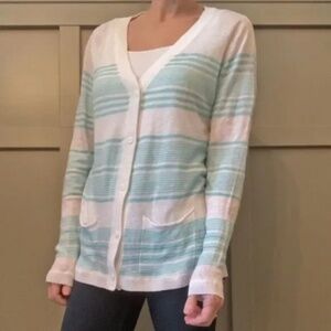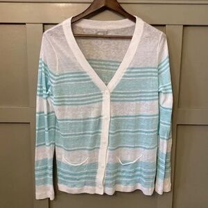 Garnet Hill 100% Linen Striped Button Front Cardigan Sweater Size Large