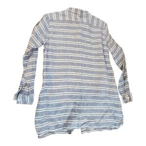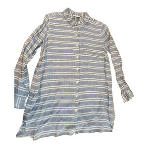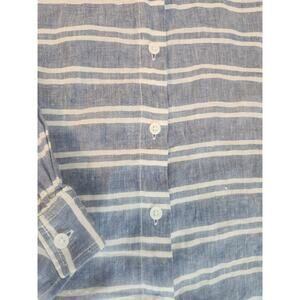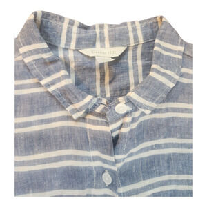 Garnet Hill 100% Linen womens top sz small petite button up tunic blue white