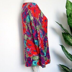 - Gorgeous floral pattern in red, purple, green, teal, turquoise, pink, and orange.