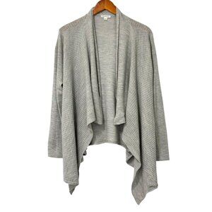 Garnet Hill 100% Merino Wool Open Cardigan Draped Light Heather Gray Soft Size L