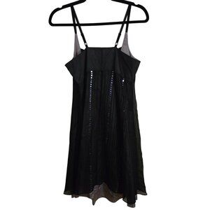 Garnet Hill 100% Silk Black Sequined Underlay Pintuck Slip Dress Size 4