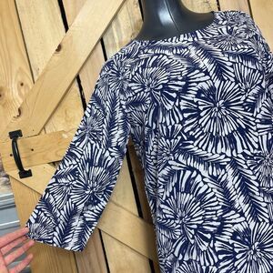 Garnet Hill 100% Silk Blue Burst Pattern Dress Midi Shift Size 4 Women’s