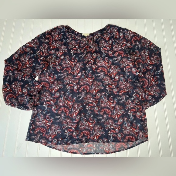 Garnet Hill 100% Silk Floral Print Blouse Top Medium Blue Tunic. 158