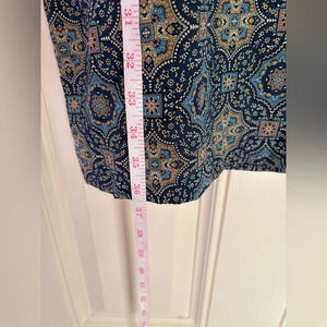 Garnet Hill 100% Silk Shift Dress 3/4 Sleeve Blue Medallion Print Size 12
