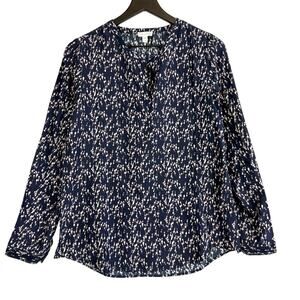 Garnet Hill 100% Silk VNeck Blouse Floral Navy Blue - 4