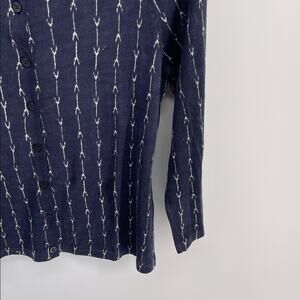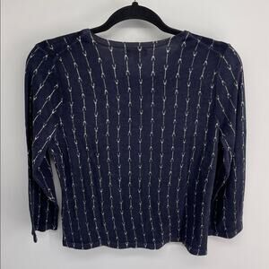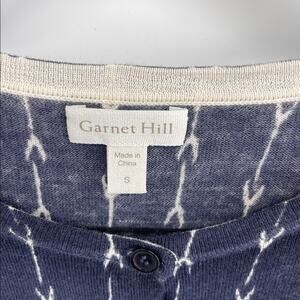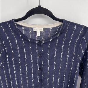 Garnet Hill 100% merino wool arrow indigo print crewneck knit sweater cardigan S