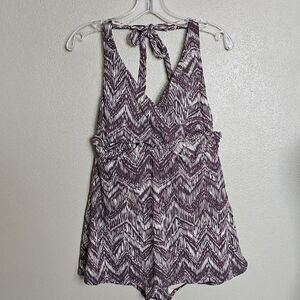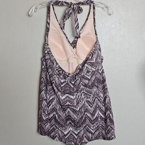 Garnet Hill 12 Signature Crossover Swim Dress Chevron Patterned Halter
