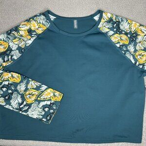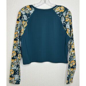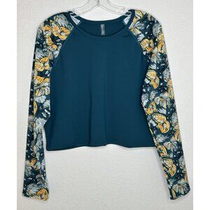 Garnet Hill Active Cropped Rashguard Top Womens Extra Large Teal Stretch UPF XL