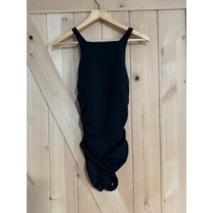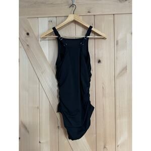 Garnet Hill | Active Side Gathered High Neck One Piece Black Swimsuit | Size 6