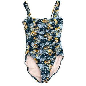 Garnet Hill Active Square Neck One Piece Ruched Swimsuit size 4