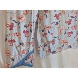This Garnet Hill Asian Wrap Blue Pink Floral Organic Cotton Pajama Set in size Large is a stylish and comfortable choice for women. Made from soft and breathable cotton, the set features a V-neckline, long sleeves, and a pull-on closure for easy wear. The vibrant floral pattern in shades of blue and pink adds a touch of spring to your bedtime routine, making it perfect for the winter, fall, and spring seasons. No wonder this pajama set is a popular choice for women looking for both style and comfort in their sleepwear.