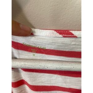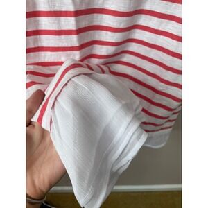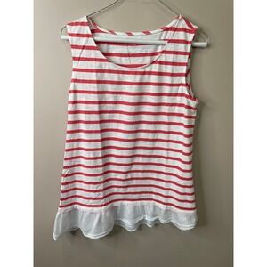 The striped tank that stands out in a sea of tees, our fresh, feminized silhouette features an angled two-layer ruffle (one crinkled, one crêpe) to dress up whatever you pair it with. We designed the mixed-media layers with a wraparound slit — a pretty detail that also adds a little movement just where you want it. Sleeveless Hip length on one side; tunic length on the other Heavier-weight slubbed cotton jersey Crinkle poly, poly chiffon ruffle trim excellent preowned condition tags summer 4th of july fourth of july holiday cookout boat resort beach vacation