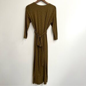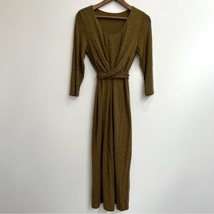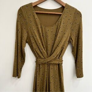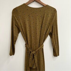 Garnet Hill Ballet Wrap Midi Dress Long Sleeve Moss Green Floral Size Medium