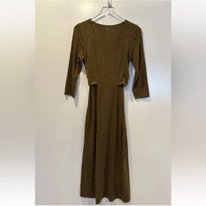 Garnet Hill Ballet-Wrap Knit Midi Dress Green Floral Womens Size Small (1204)