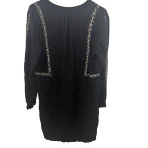 Classic black dress with detailed embroidery. Ideal for versatile wear. Button detail to chest. Long sleeves.