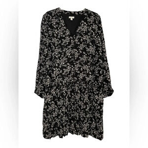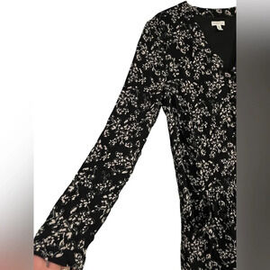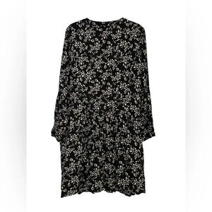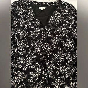 Garnet Hill Black Floral Drop Waist Button Up Dress Sz 10