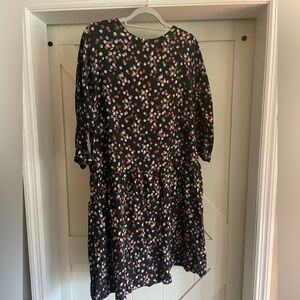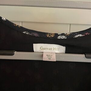 Garnet Hill Black Floral Multicolor Dot 3/4 Sleeve Dress Pockets Viscose Sz 12