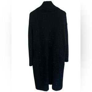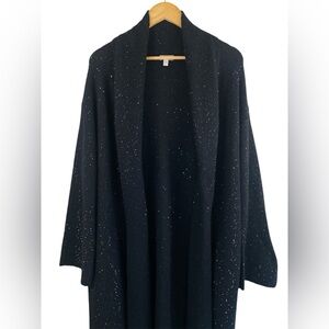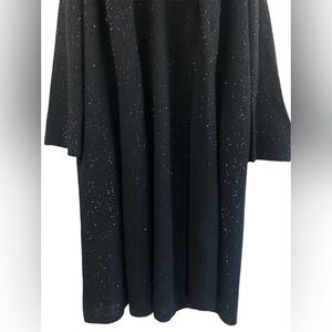 Garnet Hill Black Long Open Front Sequin Knit Cardigan Sweater L Alpaca Wool Blend