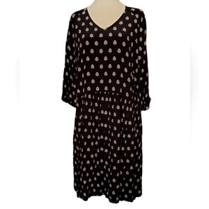 Garnet Hill Black Patterned Baby Doll Style Half Sleeve Midi Dress Size 12