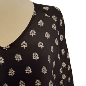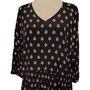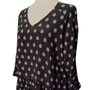 Garnet Hill Black Patterned Baby Doll Style Half Sleeve Midi Dress