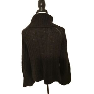 Garnet Hill Black Turtleneck Cable Knit Kid Mohair Wool Sweater - Size Medium