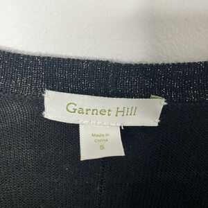 Garnet Hill Black Wool Metallic Hem Open Cardigan
