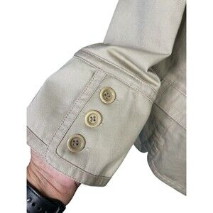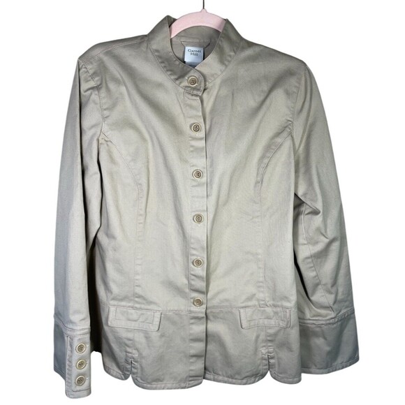 Garnet Hill Blazer Jacket Women's 12 Tan Military Moto Cotton Mandarin Collar