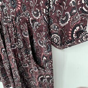 Garnet Hill Bohemian Paisley Print Dress Size 4 Plum Floral 3/4 Sleeve Pockets