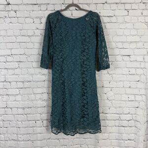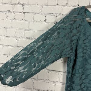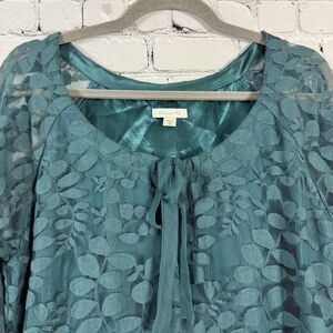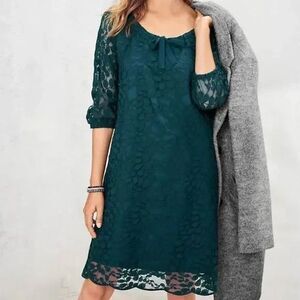 Garnet Hill Bohème Easy Lace Dress Women's Size 8 in Teal Green Bishop Sleeve.