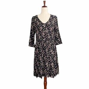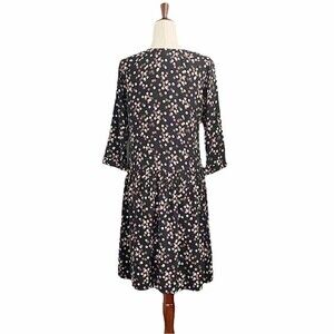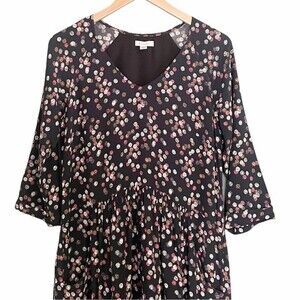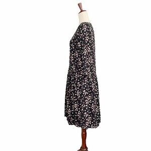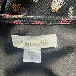 Garnet Hill Boho Dress Midi Flowy Black Multi Painterly Polka Dots Womens Size 6