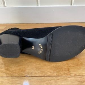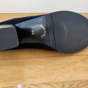 This suede bootie is from Garnet Hill and made in Italy. It has a 2inch heel. Round toe box which doesn't pinch the toes. Black, size 8.5 in good condition. Only worn twice. Very well made and comfortable!