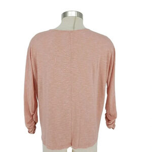 Garnet Hill Boxy Shirt Pink Ruched 3/4 Sleeve Lightweight V Neck Top