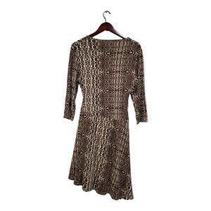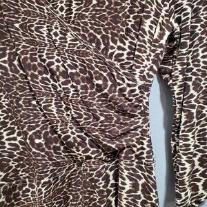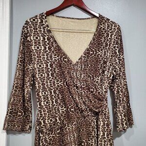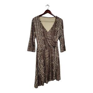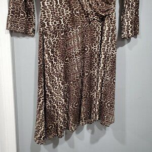 Garnet Hill Brianna Faux Wrap Dress 3/4 Sleeve Cheetah Print Asymmetrical Size M
