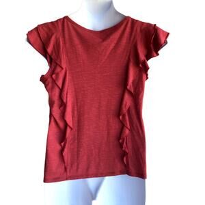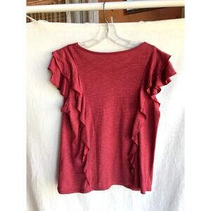 Garnet Hill Brick Red - Coral Slub Knit T Shirt with Ruffles size M