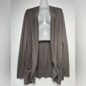 Garnet Hill Brown Gray Linen Blend Open Long Cardigan Pockets Women size XL