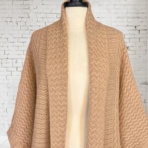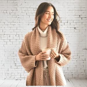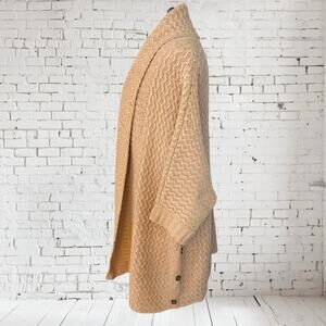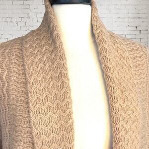 Garnet Hill Cardigan 100% Cashmere Cable Knit Oversized Coatigan Tan Large $425