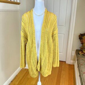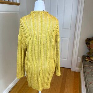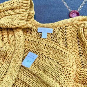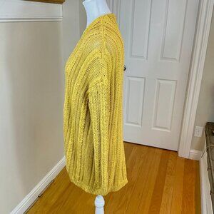Garnet Hill Cardigan Sweater Linen Cotton Long Golden Yellow Cable Knit 2021 (L)