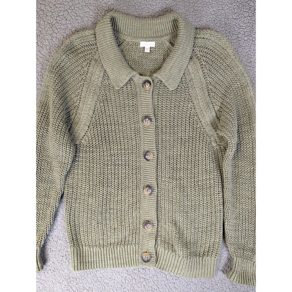 Garnet Hill Cardigan Sweater Women's Lrg Washed Olive Maren Organic Cotton Linen