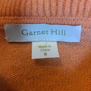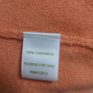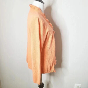 Garnet Hill 100% Cashmere long sleeve button front cardigan sweater in a beautiful peach color. Ruffle detailing down front. Excellent preowned condition.