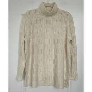 Garnet Hill Cashmere Merino Sweater M Turtleneck Cable Knit Ivory Tunic Oversized.