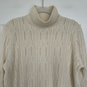 Garnet Hill Cashmere Merino Sweater M Turtleneck Cable Knit Ivory Tunic Oversize