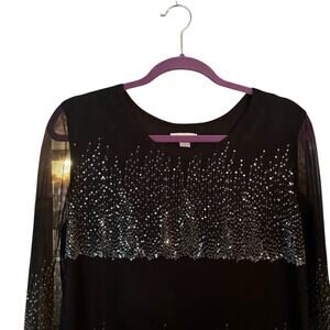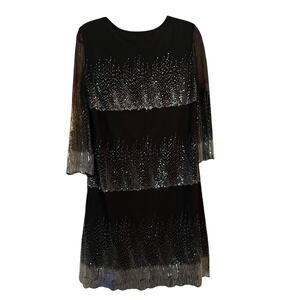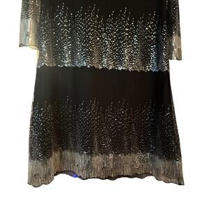 Garnet Hill Cocktail Dress Black Silver Sequins 8 A-line Sparkly Holiday Party
