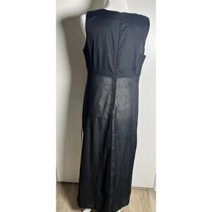 The Garnet Hill Cotton Midi Dress in size 16 features a minimalist design with a colorblock pattern in black and white. This sleeveless dress has a scoop neckline and a zip closure, making it suitable for various occasions such as parties, formal events, and business meetings. Made from lightweight cotton fabric with embroidered accents, this dress is lined and perfect for wearing in the summer, fall, or spring seasons. The dress is from the brand Garnet Hill and offers a stylish and comfortable option for women looking for a versatile and elegant outfit.