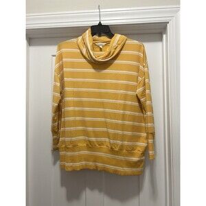 Garnet Hill Cowl Neck Knit Tunic Gold Yellow & White Striped Size Large Cozy