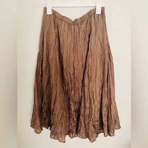 Garnet Hill Crinkle 100%Silk Maxi Skirt Campan clasic flare Women’s 12p