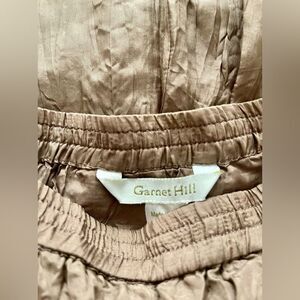 Embrace timeless beauty with this stunning Garnet Hill crinkle silk maxi skirt in a captivating campan colorway. Expertly crafted for the modern woman, this skirt boasts a perfect fit for regular sizing and features a length that is sure to flatter any silhouette. The rich tan color complements any skin tone while the long flowy design adds elegance to any outfit.