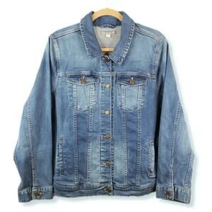 Garnet Hill Denim Jean Jacket XL 14 Organic Coastal Classic Preppy Americana